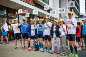 The Toronto Marathon Pace Team is sponsored by The Running Room – look for the Bunny Ears at the start line. Completion times/pace will be on the rabbit ears.